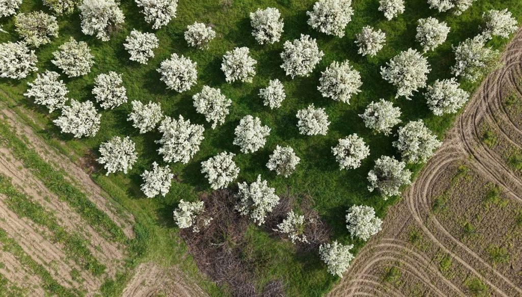 Bursa’da meyve ağaçlarının çiçek açtığı bahçeler dronla görüntülendi